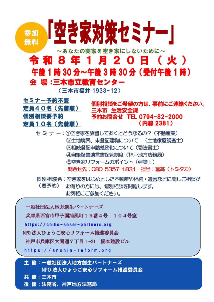 「空き家対策セミナー」開催決定!
